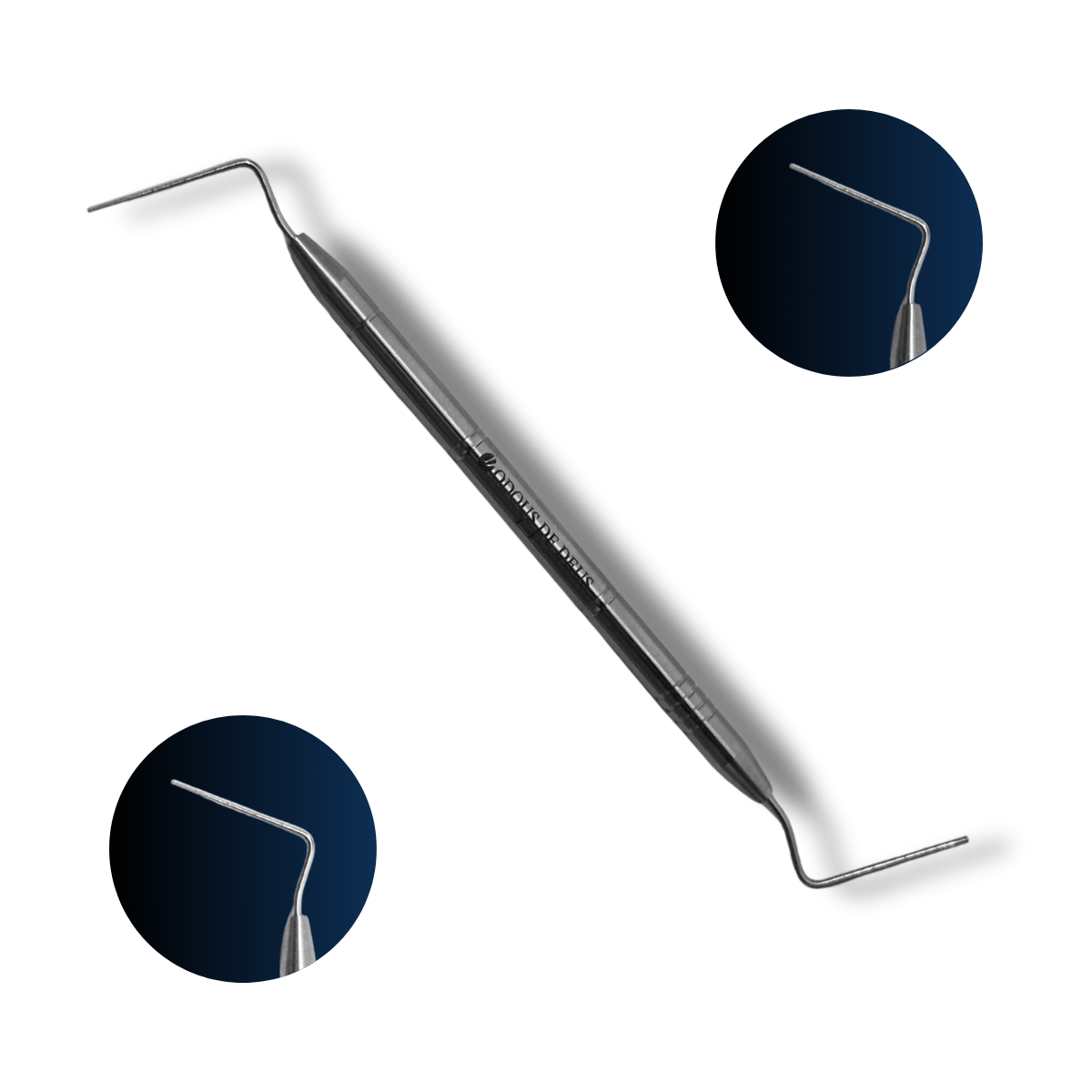 O Condensador dupla face (1–4) para compactação vertical/lateral de guta-percha e cimentos, cobrindo do terço médio ao apical com excelente controle tátil.