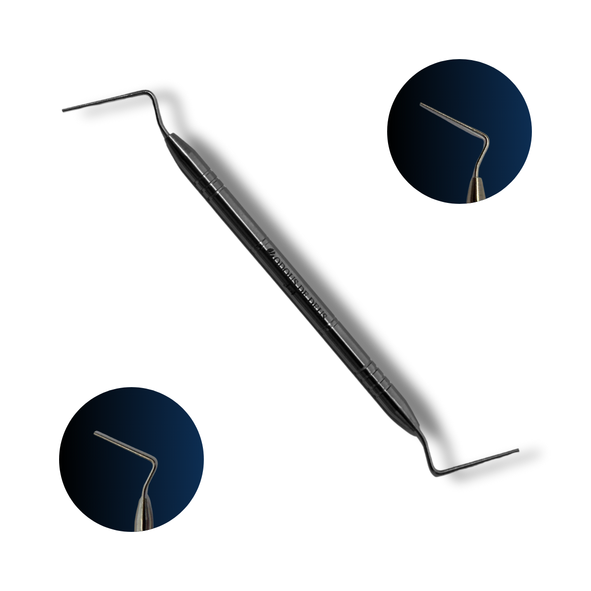 O Condensador dupla face (3-4) para compactação vertical/lateral de guta-percha e cimentos, cobrindo do terço médio ao apical com excelente controle tátil.