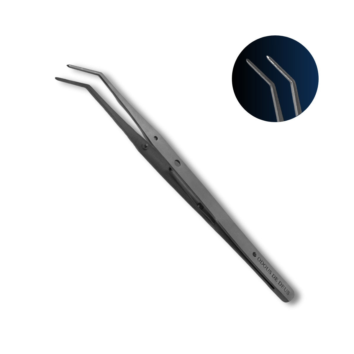 Pinça endodôntica sem trava, pontas finas e serrilhadas, para manuseio preciso de cones de guta-percha, pontas de papel, algodão e microitens em campo seco/isolado. Aço inox, autoclavável.
