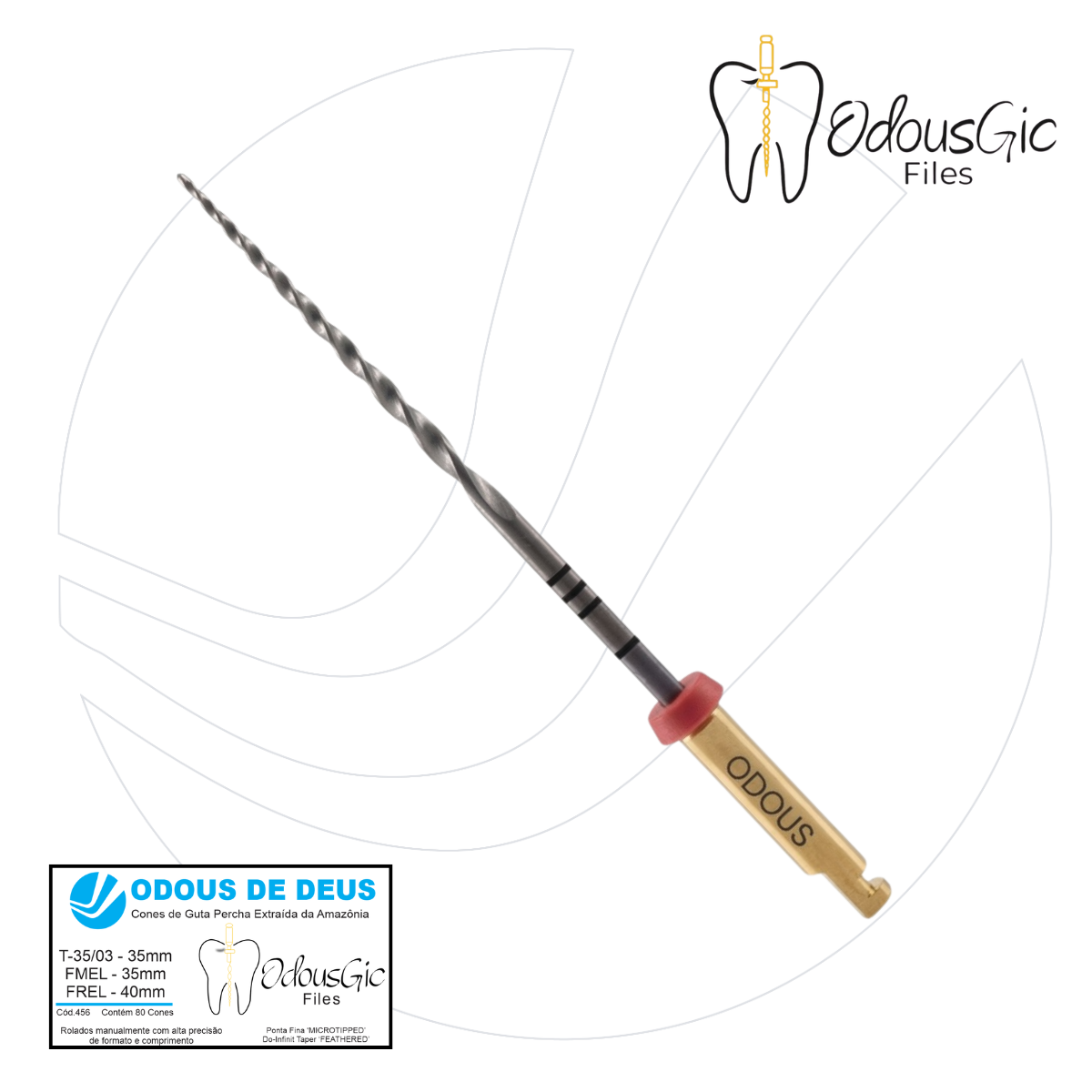 • Limas, cones de guta-percha e acessórios produzidos com matérias-primas de alto desempenho, adequadas ao uso endodôntico.